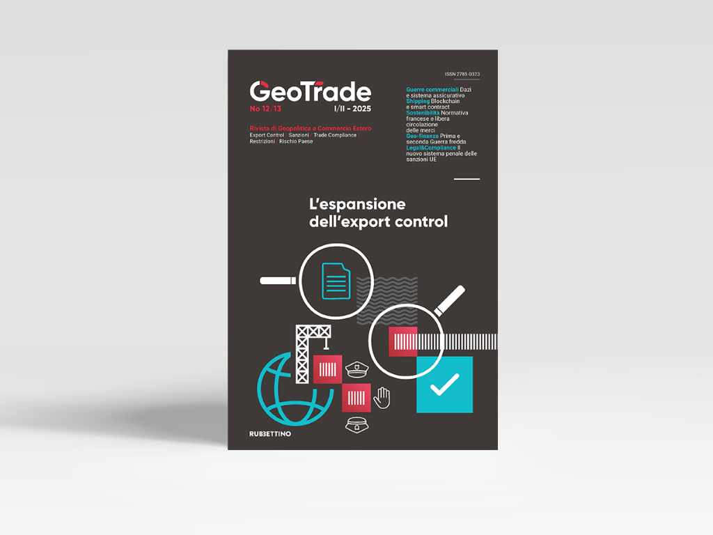 Ogni numero di GeoTrade si articola in un focus principale e una serie di approfondimenti e interviste sui vari ambiti delle restrizioni e della compliance. La storia di copertina del numero 12-13 è “L’espansione dell’export control”.